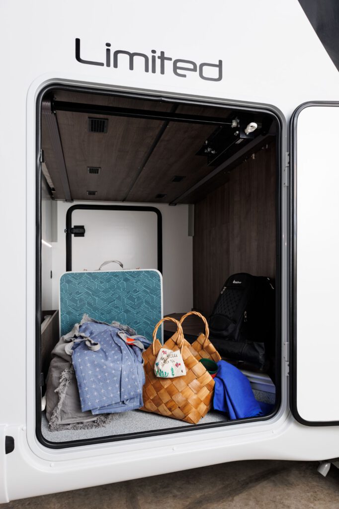 Notranjost avtodoma vključuje dve prostorni dnevni sobi – spredaj in zadaj – kar omogoča ločena prostora za sprostitev ali druženje. Obe dnevni sobi sta opremljeni z električno pomičnima dvojnima posteljama, kar zagotavlja udobno spanje za štiri osebe brez potrebe po preurejanju sedežev. Kuhinja je opremljena z L-oblikovano delovno površino, ki vključuje kombiniran štedilnik s tremi gorilniki (dva plinska in en električni), pečico z žarom, mikrovalovno pečico in 145-litrski hladilnik z zamrzovalnikom ter samodejnim izbiranjem vira energije. Kopalnica ponuja ločeno tuš kabino z zložljivimi vrati, vrtljivo straniščno školjko in umivalnik ter dodatke, kot so milnik, držalo za brisače in ogledalo.
